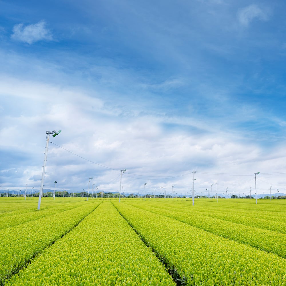 場所は富士山、駿河湾が見渡せる牧之原台地の広大な茶園。溢れる太陽の恵みと、肥沃な赤土で力強く育つお茶は旨みたっぷり!妥協を惜しまず、愛情込めて育てています。
